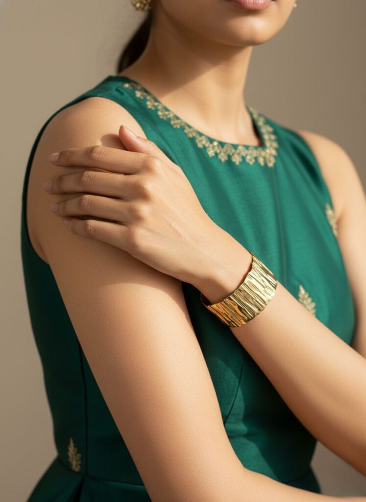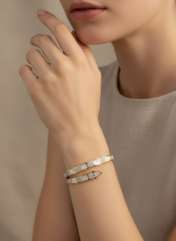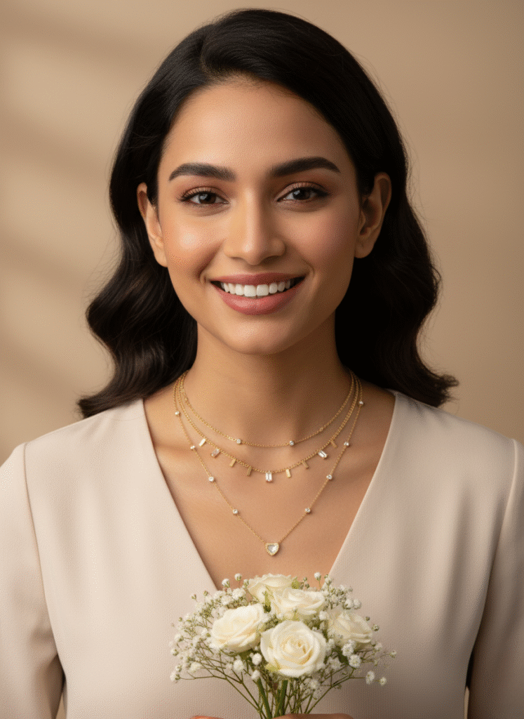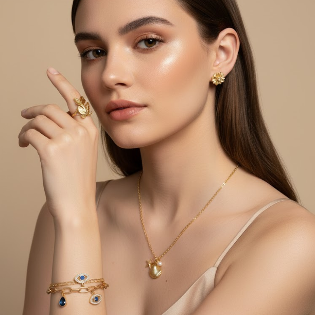 We use high-quality, skin-friendly materials including stainless steel, sterling silver, and premium gold plating designed for long-lasting shine.