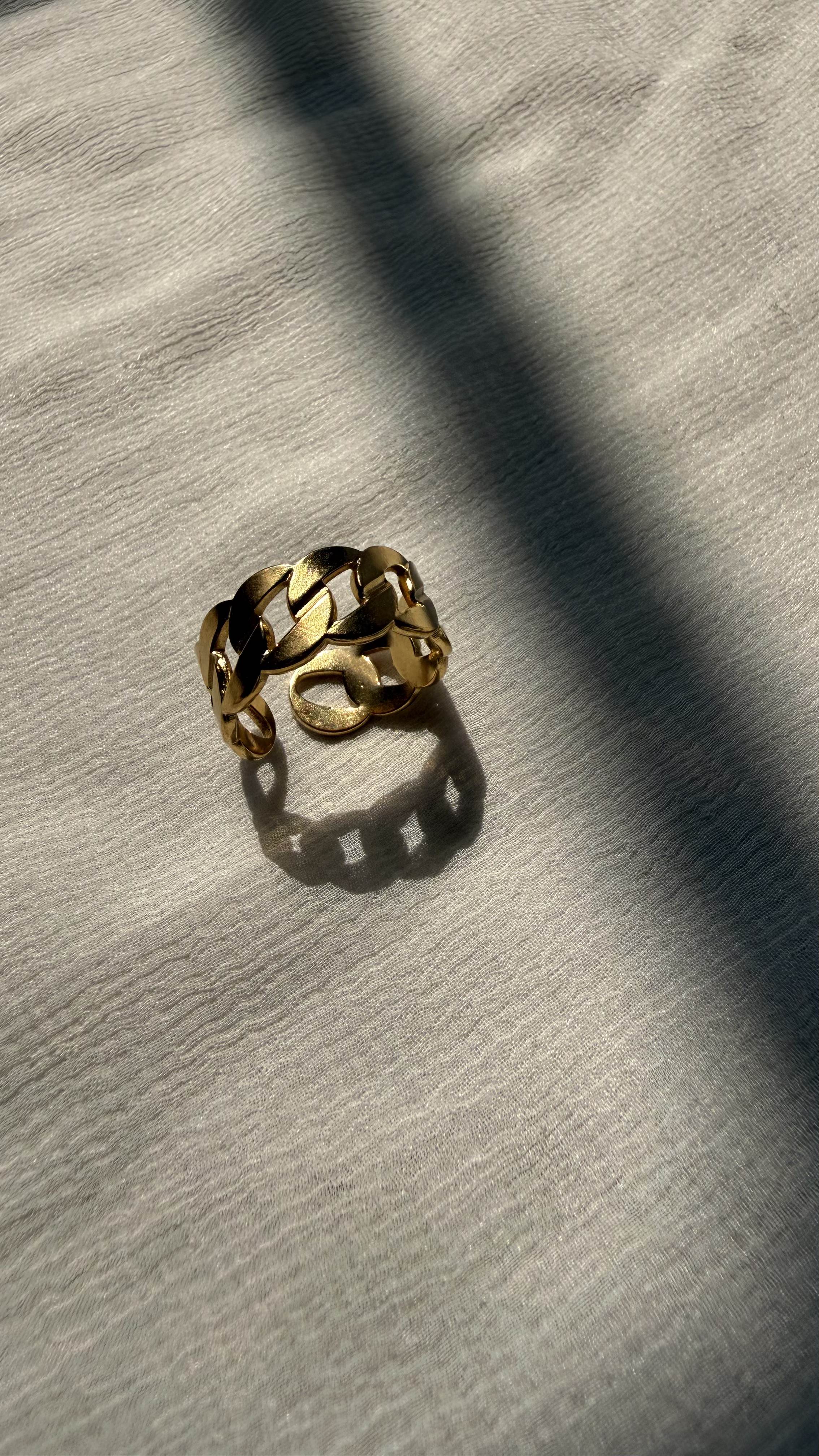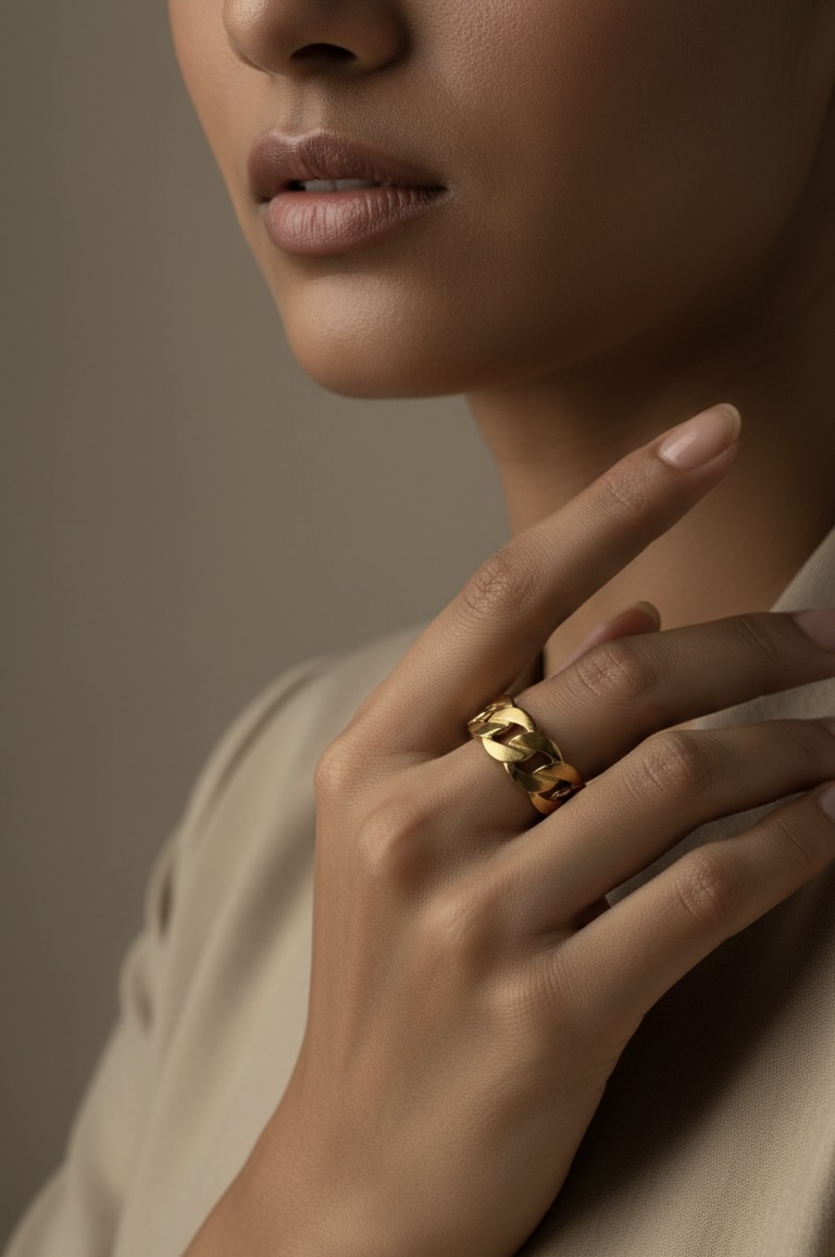 Channel confident style with the Golden Chain Bold Ring — designed with interlocked chain-inspired links for a strong yet polished look.