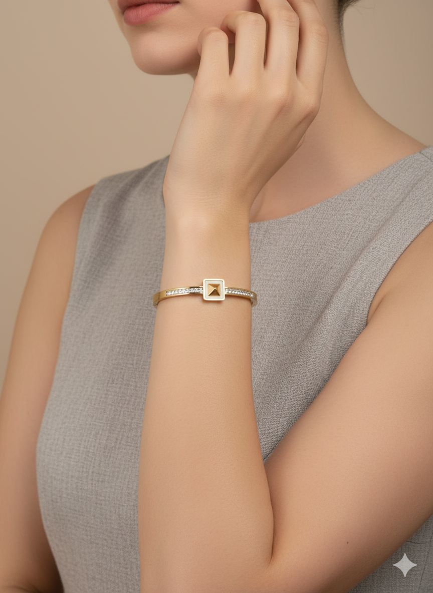 Add a bold touch of architecture-inspired glamour to your jewelry collection with this captivating bangle.