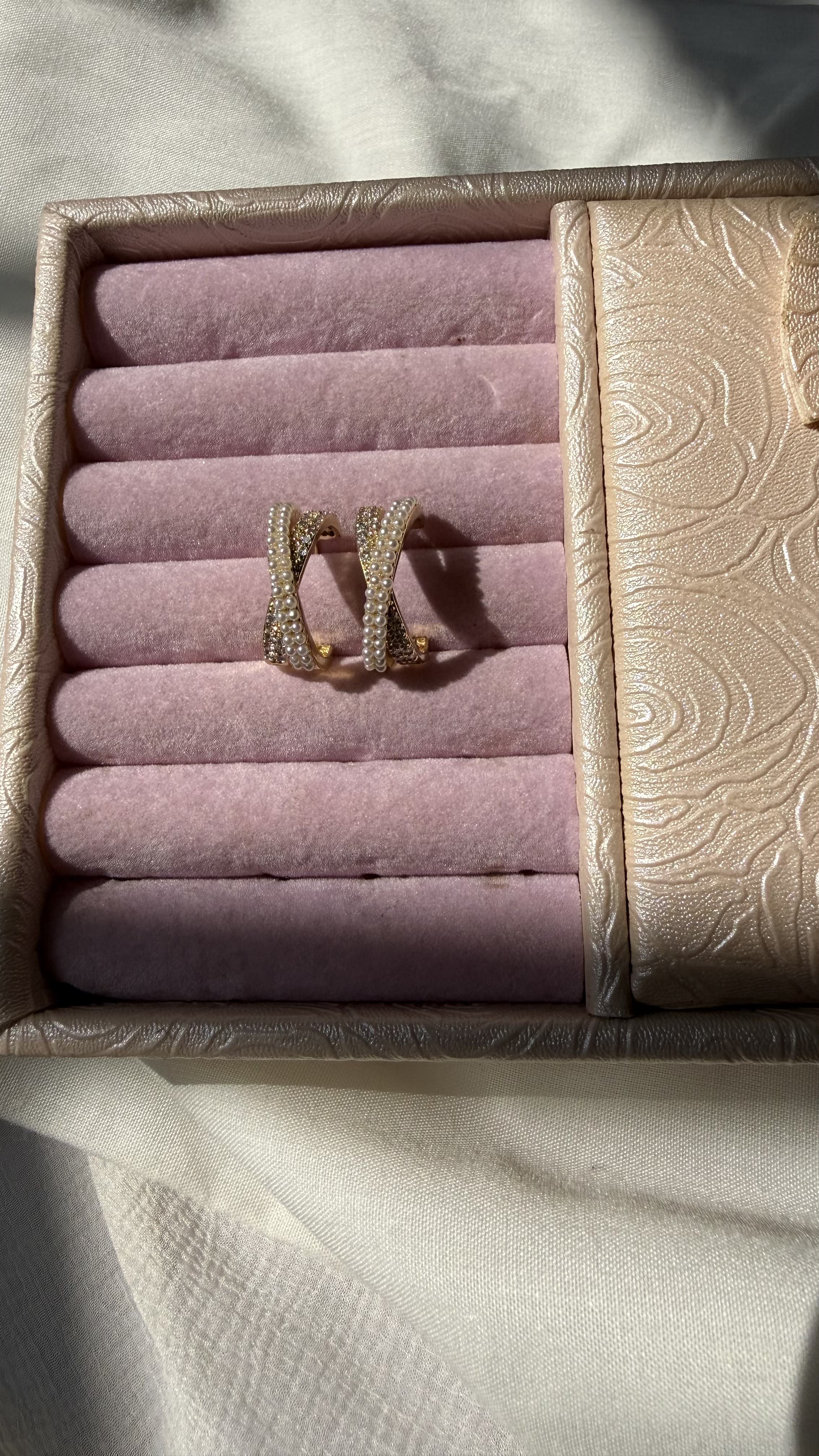 Discover delicate sparkle with the Petite Pave Criss-Cross Hoops—a dainty crossover design encrusted with fine crystals for a refined, multi-dimensional shimmer. These huggie-style earrings provide a sophisticated layered effect that sits beautifully against the ear.